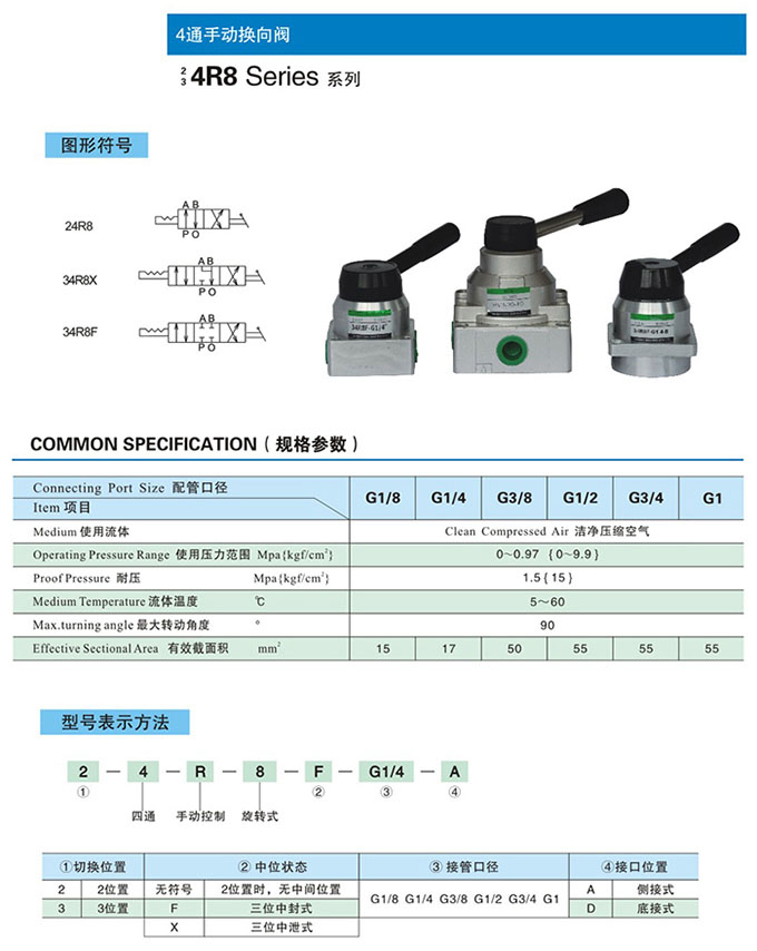 24R8-G1/8,24R8-G1/4,24R8-G3/8,24R8-G1/2,24R8-G3/4,24R8-G1,24R8-G1/8-A,4通手動換向閥 |
