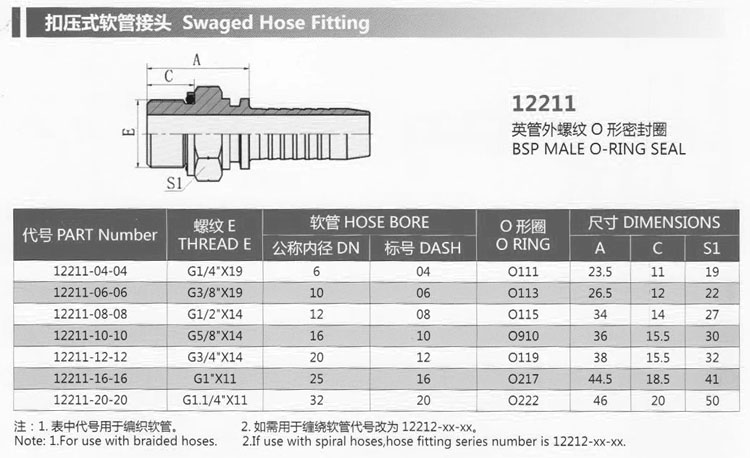 12211-04-04,12211-06-06,12211-08-08,12211-10-10,12211-12-12,12211-16-16,12211-20-20,扣壓式軟管接頭