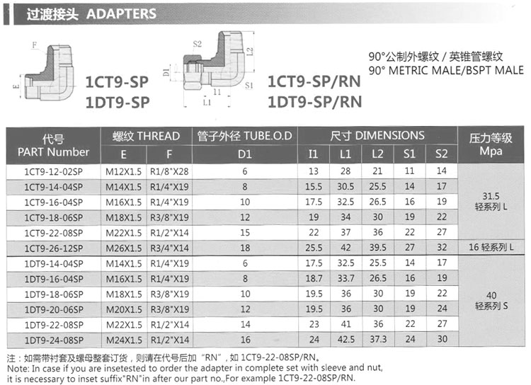 1CT9-12-02SP,1CT9-14-04SP,1CT9-16-04SP,1DT9-20-06SP,1DT9-22-08SP,1DT9-24-08SP,過渡接頭