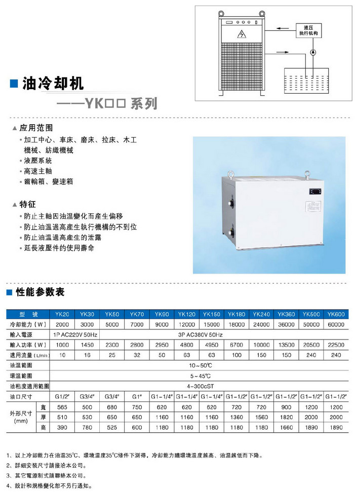 YK20,YK30,YK50,YK70,YK90,YK120,YK150,YK180,YK240,YK360,YK500,YK600,油冷卻機 |