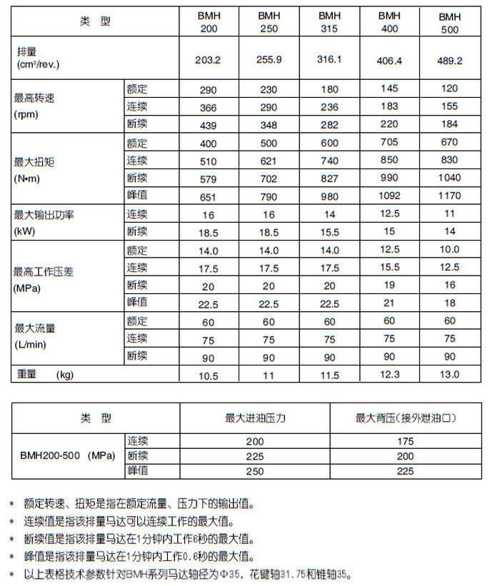 BMH-200,BMH-250,BMH-315,BMH-400,BMH-500,blince擺線液壓馬達(dá)
