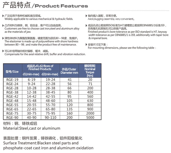 RGE-19,RGE-24,RGE-28,RGE-38,RGE-42,RGE-48,RGE-55,RGE-65,梅花形彈性爪式聯(lián)軸器 |