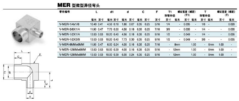 V-MER-1/4*1/8,V-MER-3/8*1/4,V-MER-8MM*6MM,V-MER-12MM*6MM,微型異徑彎頭 |