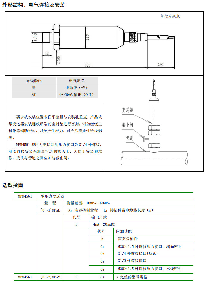 MPM4561-10,MPM4561-60,壓力變送器