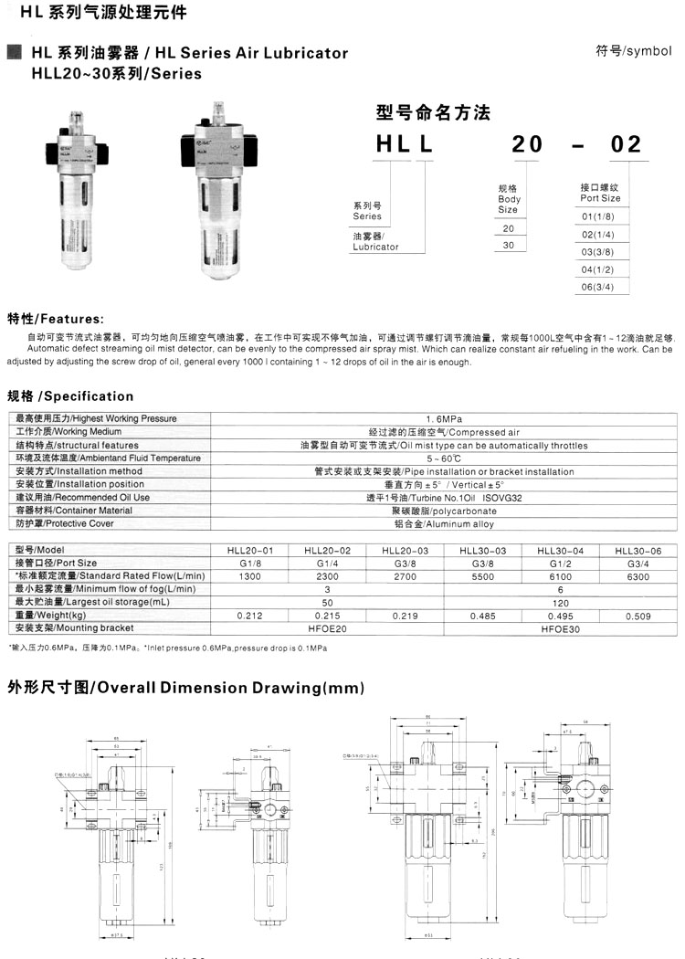 HLL20-01,HLL20-02,HLL20-03,HLL30-03,HLL30-04,HLL30-06,油霧器