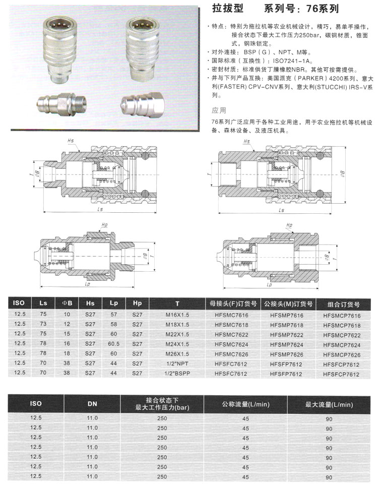 HFSMCP7616,HFSMCP7618,HFSMCP7622,HFSMCP7624,HFSMCP7626,HFSFCP7612,HFSMC7616,液壓快速接頭
