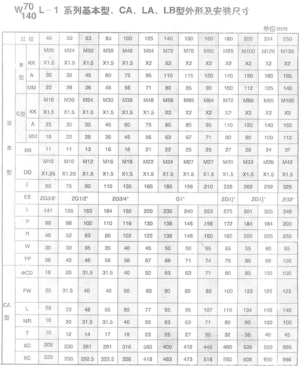 W70L-11CA40B,W70L-12CA40B,W70L-13CA40B,W70L-11CA40C,W70L-12CA40C,W70L-13CA40C,輕型拉桿液壓缸 |