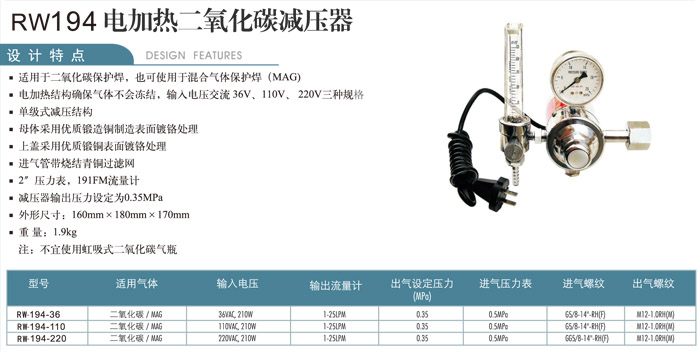 RW-194-36,RW-194-110,RW-194-220,電加熱二氧化碳減壓器