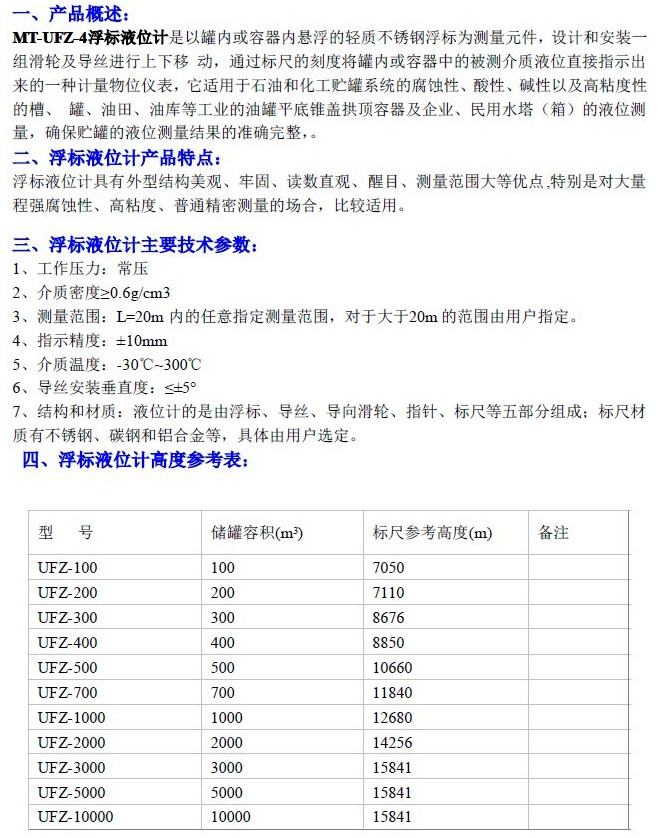 UFZ-100,UFZ-200,UFZ-300,UFZ-400,UFZ-500,UFZ-700,浮標(biāo)液位計(jì)