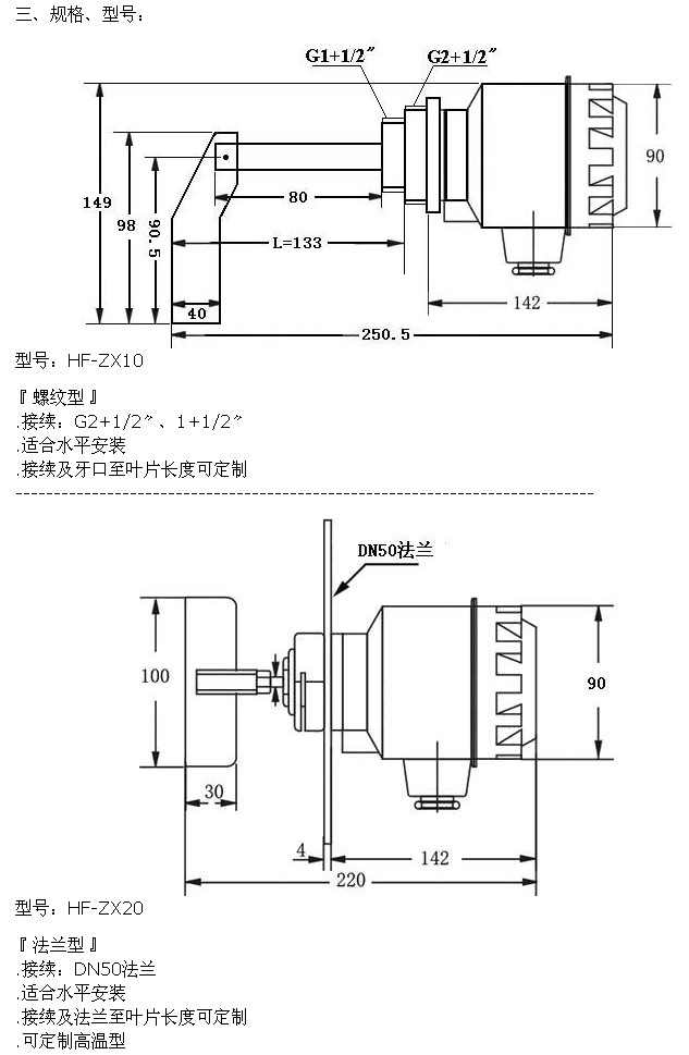 HF-ZX10,HF-ZX20,HF-ZX30,HF-ZX40,HF-ZX50,阻旋式料位開關(guān)