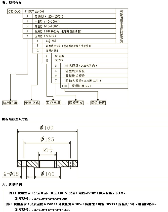 CTS-DLQ-P-A-A,CTS-DLQ-E-B-A,CTS-DLQ-H-C-A,CTS-DLQ-F-A-D,射頻電容式物位變送器 |