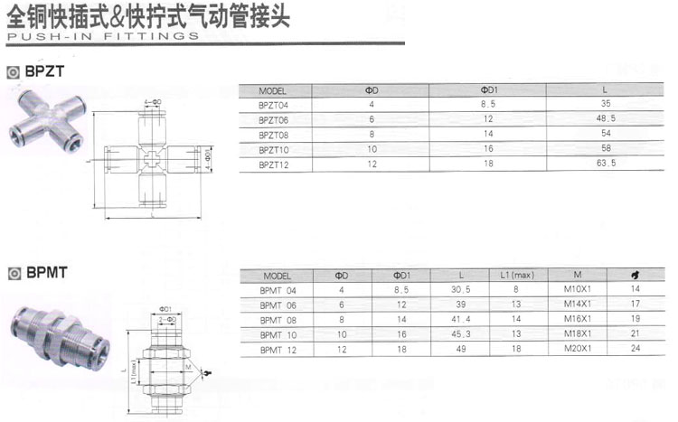 BPZT04,BPZT06,BPZT08,BPZT10,BPZT12,BPMT04,BPMT06,BPMT08,BPMT10,BPMT12,氣動(dòng)管接頭