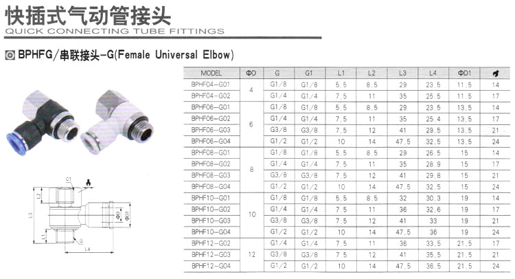 BPHF04-G01,BPHF06-G01,BPHF08-G01,BPHF10-G01,BPHF12-G02,BPHF04-G02,快插式氣動管接頭 |
