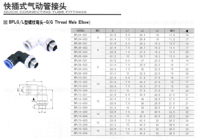 BPL04-G01,BPL06-G01,BPL08-G01,BPL10-G01,BPL12-G01,BPL14-G03,BPL15-G03,BPL16-G03,快插式氣動管接頭 |