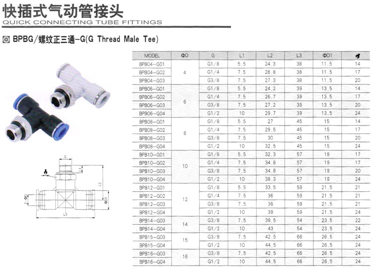 BPB04-G01,BPB06-G01,BPB08-G01,BPB10-G01,BPB12-G01,BPB14-G03,BPB15-G03,BPB16-G03,快插式氣動(dòng)管接頭