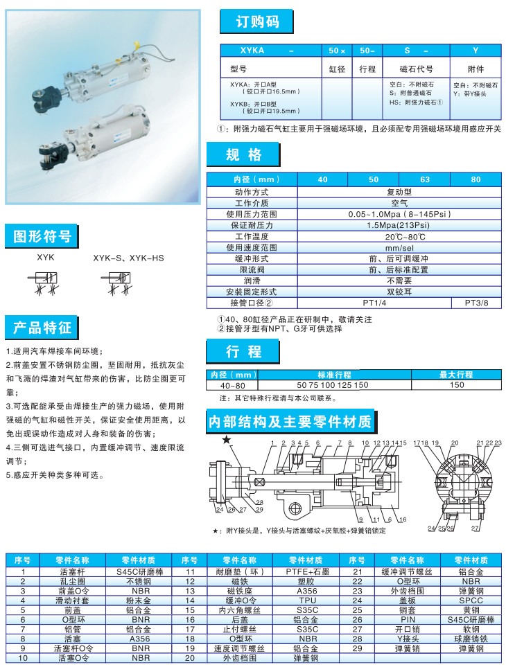 XYKA-80*50-S-Y,XYKA-80*75-S-Y,XYKA-80*100-S-Y,XYKA-80*125-S-Y,XYKA-80*150-S-Y,