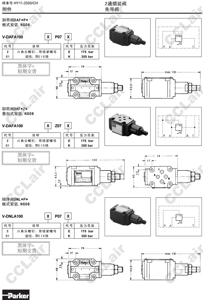 V-DAFA1002P07E,V-DAFA1002P07K,V-DAFA10061P07E,V-DAFA10061P07K,Parker2通插裝卸荷閥