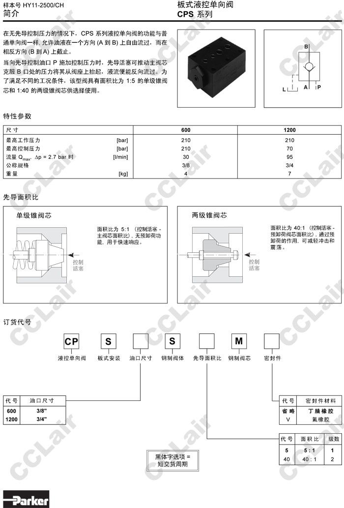 CPS600S5M,CPS600S5V,CPS600S40M,CPS600S40V,CPS1200S5M,CPS1200S5V,CPS1200S40M,CPS1200S40V,Parker板式液控單向 |