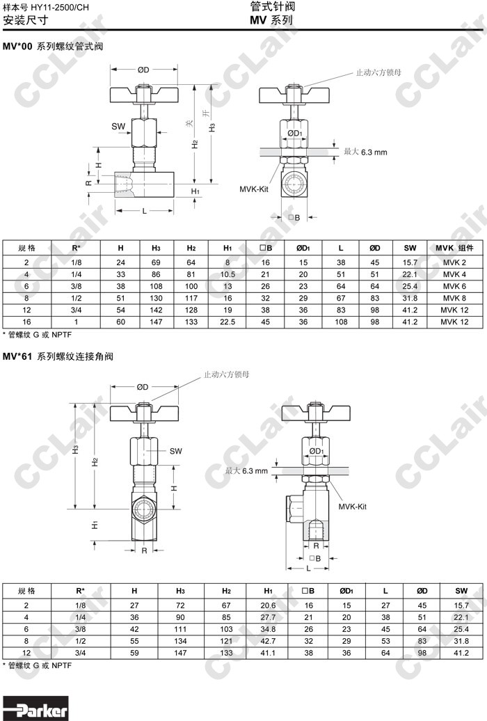 MV200,MV400,MV600,MV800,MV261,MV461,MV661,MV861,MV1261,MV200S,MV261S,Parker管式針閥 |