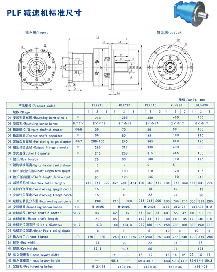 PLF215,PLF265,PLF315,PLF360,PLF430,伺服減速機(jī)