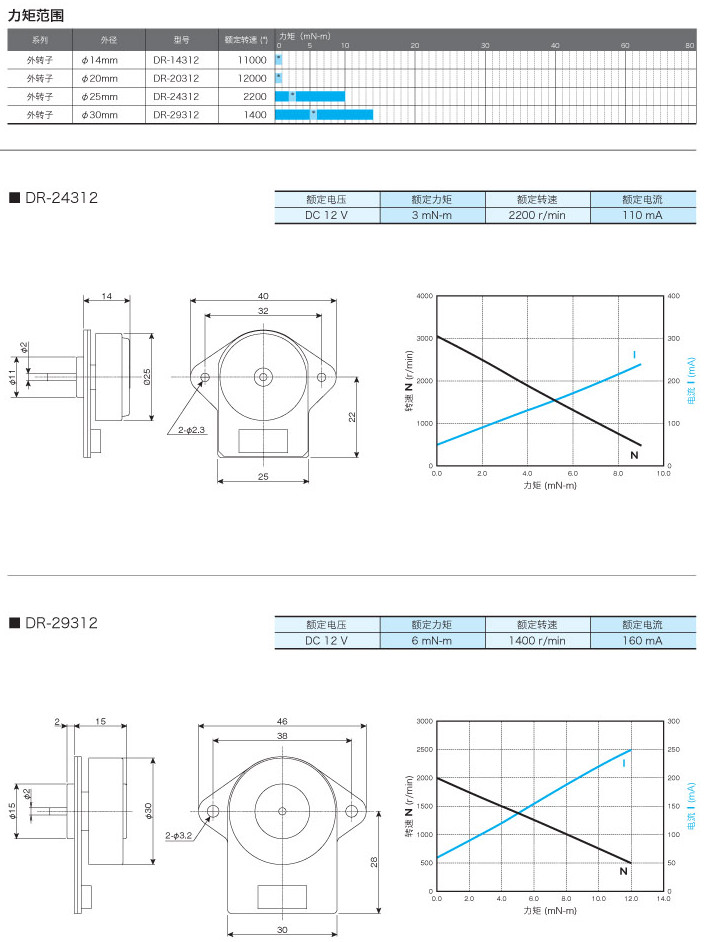 DR-14312,DR-20312,DR-24312,DR-29312,外轉(zhuǎn)子直流無刷馬達