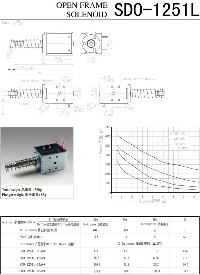 SDO-1251L-06A,SDO-1251L-12A,SDO-1251L-24A,SDO-1251L-48A,直動電磁鐵