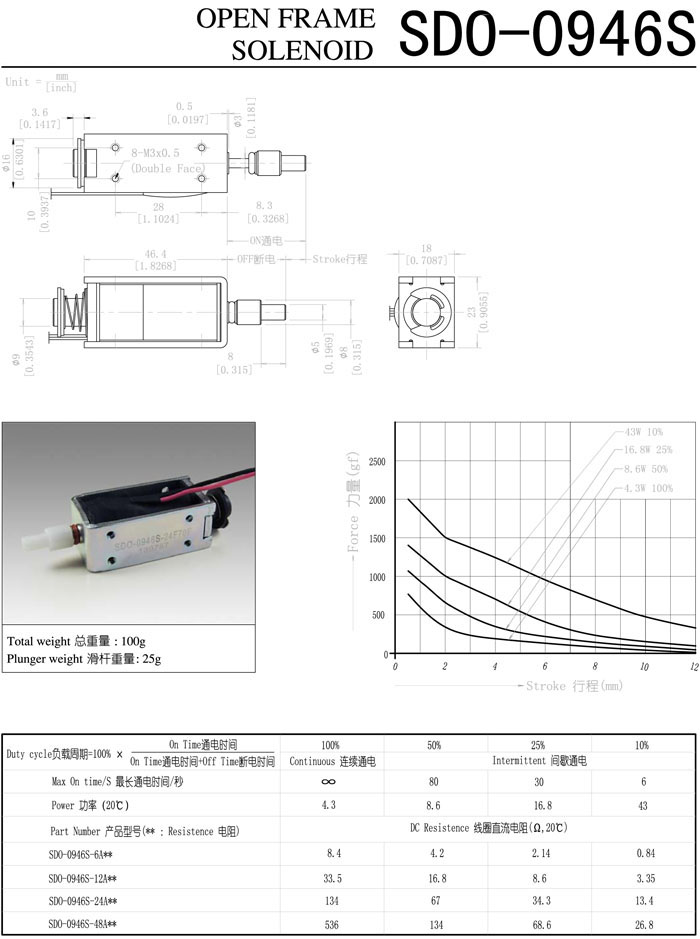 SDO-0946S-6A,SDO-0946S-12A,SDO-0946S-24A,SDO-0946S-48A,直動電磁鐵 |