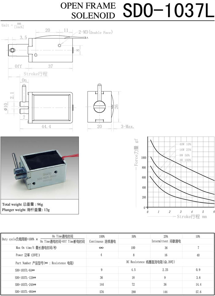 SDO-1037L-6A,SDO-1037L-12A,SDO-1037L-24A,SDO-1037L-48A,直動(dòng)電磁鐵