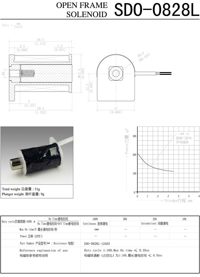 SDO-0828L-12A03,直動(dòng)電磁鐵