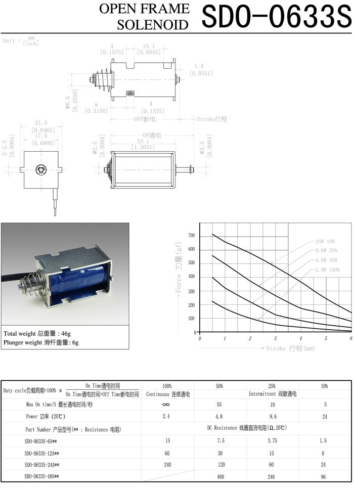SDO-0633S-6A,SDO-0633S-12A,SDO-0633S-24A,SDO-0633S-48A,直動(dòng)電磁鐵