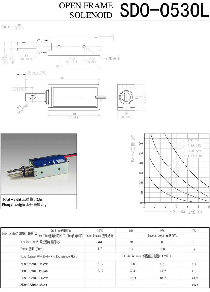 SDO-0530L-06A,SDO-0530L-12A,SDO-0530L-24A,SDO-0530L-48A,直動電磁鐵 |