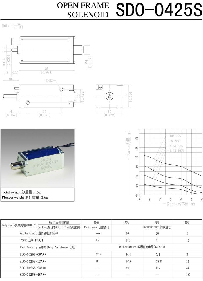 SDO-0425S-06A,SDO-0425S-12A,SDO-0425S-24A,SDO-0425S-48A,直動電磁鐵 |