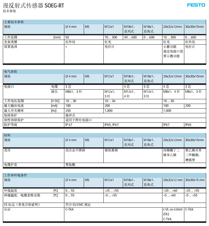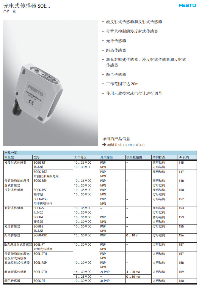 SOEG-RT,SOEG-RSP,SOEC-S,SOEL-E,SOEC-L,SOEL-RTH,festo光電式傳感器