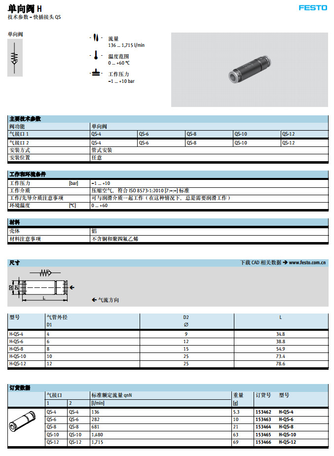 型號: H-QS-4-B,HA-M5-QS-4-B,HB-3/8-QS-4-B,HGL-1/2-QS-4-B,festo單向閥