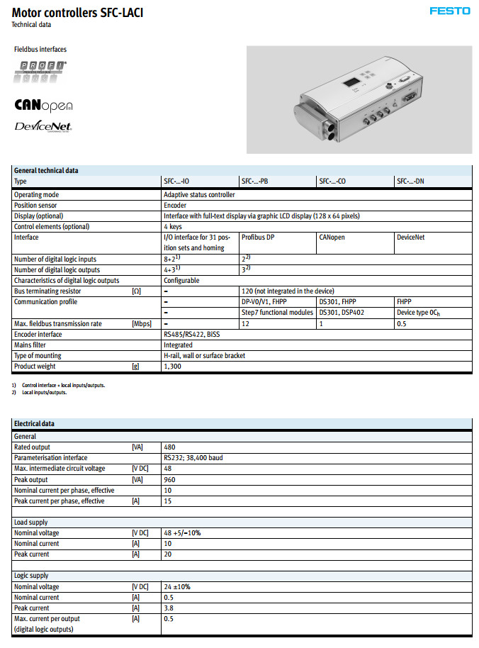 SFC-LACI-VD-10-E-H0-IO,SFC-LACI-VD-10-E-H2-PB,festo定位控制器
