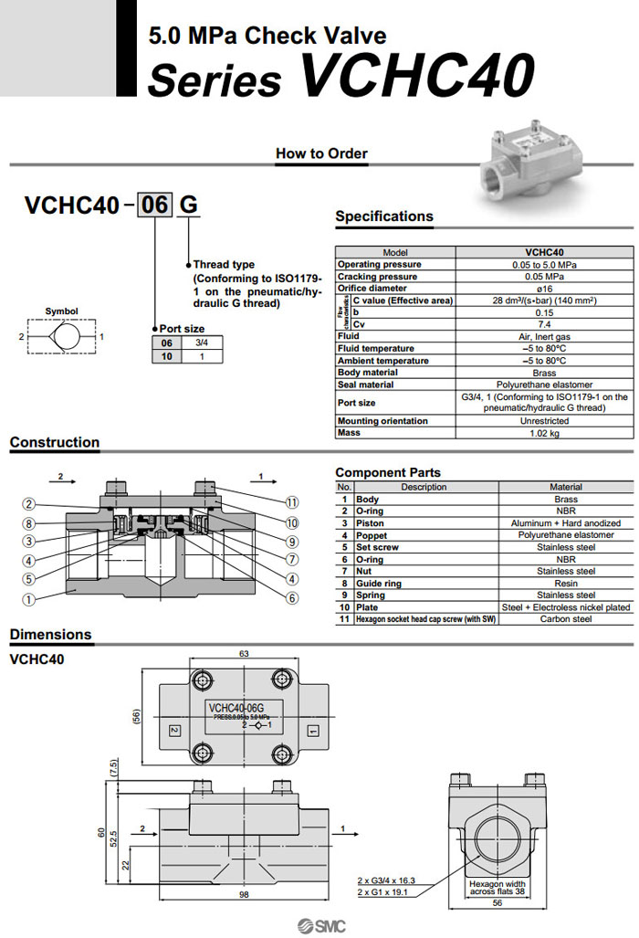 VCHC40-06G,VCHC40-10G,SMC止回閥