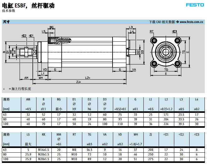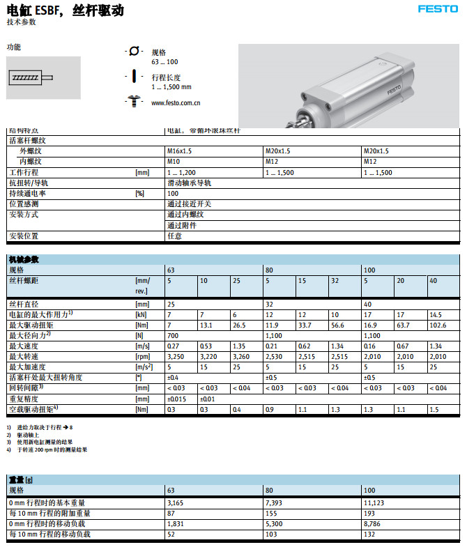 ESBF-BS-63-100,ESBF-BS-80-100,ESBF-BS-100-100,festo電缸