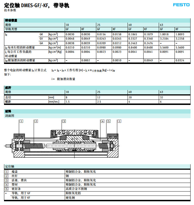 DMES-18-500-GF,DMES-25-500,DMES-40-500,DMES-63-500,festo定位軸