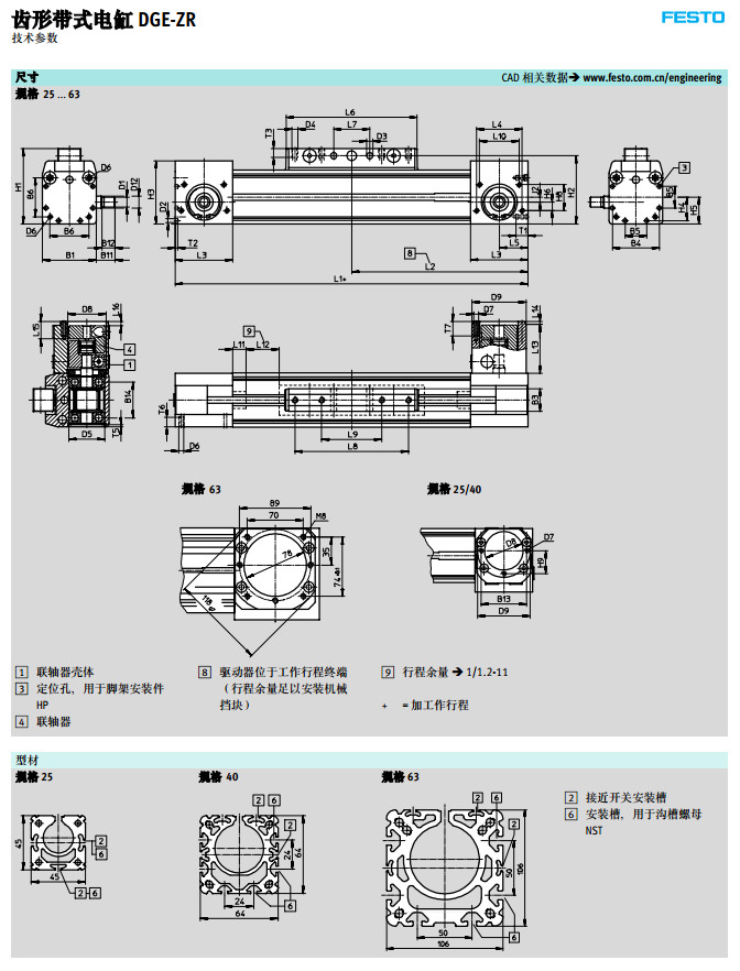 DGE-8,DGE-12,DGE-18,DGE-25,DGE-40,DGE-63,festo齒形帶式電缸 |