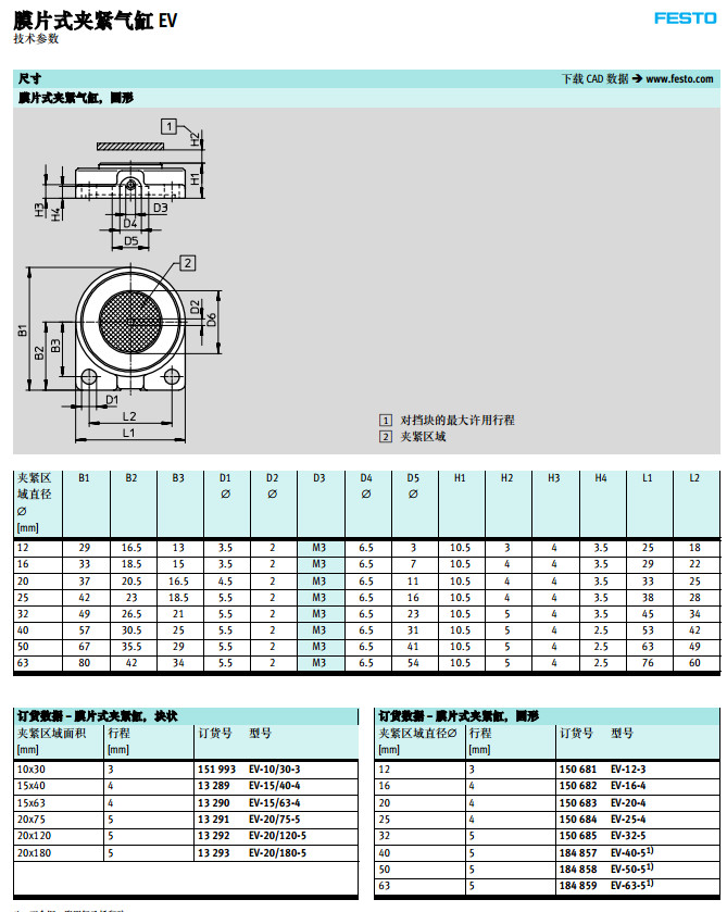 EV-10*30,EV-15*40,EV-15*63,EV-20*75,EV-12,EV-20,EV-32,EV-40,festo膜片式夾緊氣缸 |
