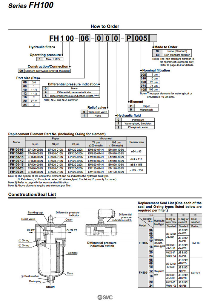 FH100-06-400-P005,FH100-06-400-P010,FH100-06-400-P020,FH100-06-400-P074,FH100-06-400-P105,SMC回流過(guò)濾器