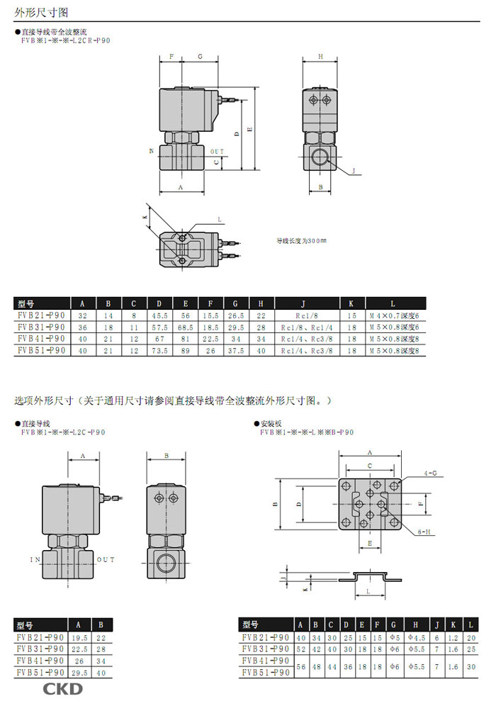 FVB21-6,FVB31-6,FVB31-8,FVB41-8,FVB41-10,FVB51-8,FVB51-10,FVB21-6-Z-LC2R-P90,CKD直動(dòng)式2通電磁閥