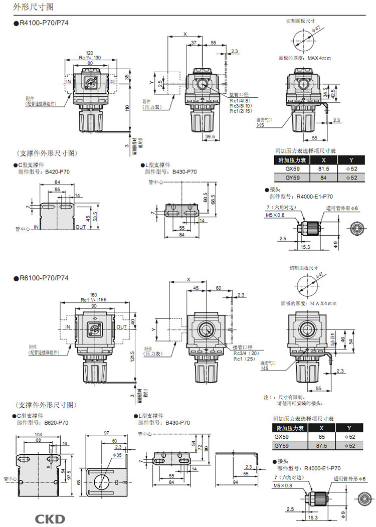 R2100-8,R2100-10,R3100-8,R3100-10,R4100-8,R4100-10,R4100-15,R6100-15,R6100-20,R6100-25,CKD可逆流減壓閥 |