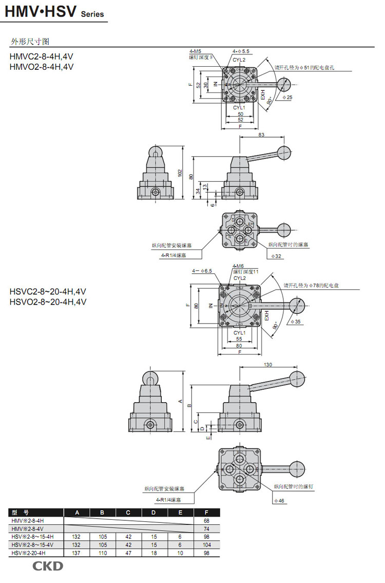 HMVC2-8-4H,HMVO2-8-4H,HSVC2-8-4H,HSVC2-8-4V,HSVC2-10-4H,HSVC2-10-4V,CKD手動切換閥