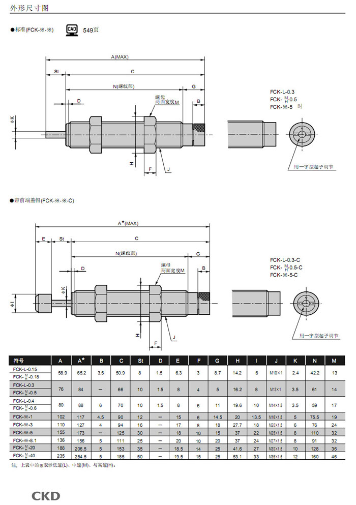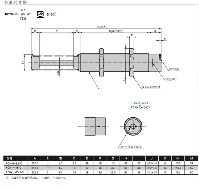 FCK-M-0.18,FCK-M-0.5,FCK-M-0.6,FCK-M-1,FCK-M-3,FCK-M-5,FCK-M-6.5,FCK-M-8.1,CKD緩沖器
