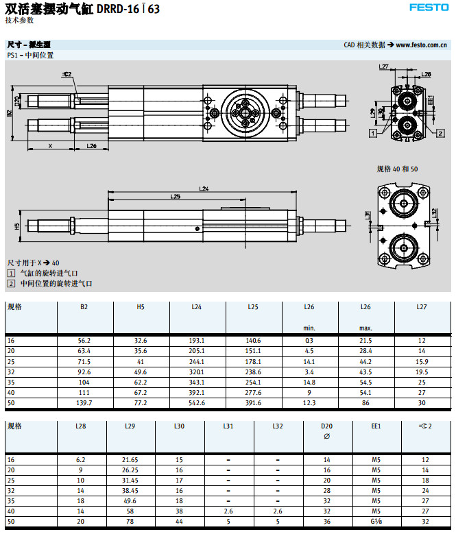 DRRD-16,DRRD-20,DRRD-25,DRRD-32,DRRD-40,DRRD-50,DRRD-63,festo擺動(dòng)氣缸