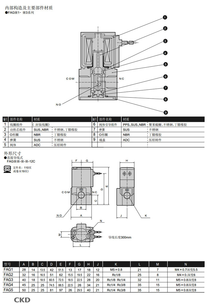 FAG11,FAG21,FAG31,FAG41,FAG51,FAG33,FAG43,FAG11-M5-Y-12C,FAG21-6-Z-12C,CKD直動式3通電磁閥