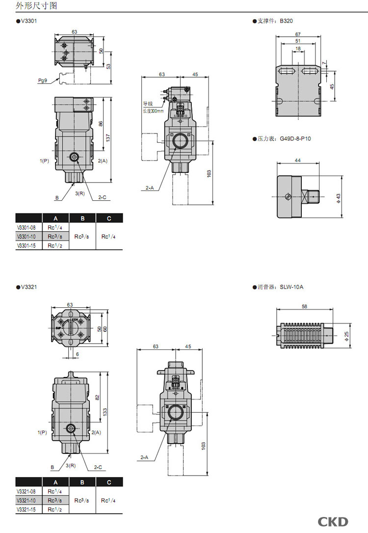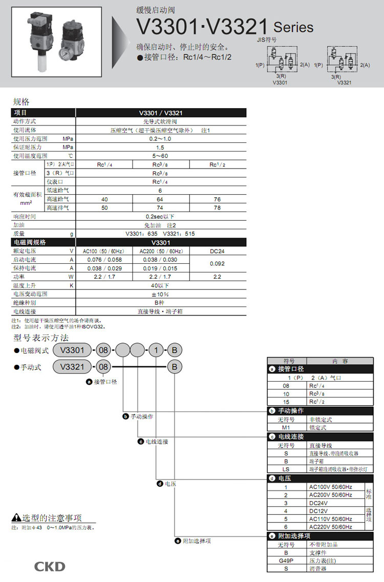 V3301-08,V3301-10,V3301-15,V3321-08,V3321-10,V3321-15,CKD緩慢啟動閥