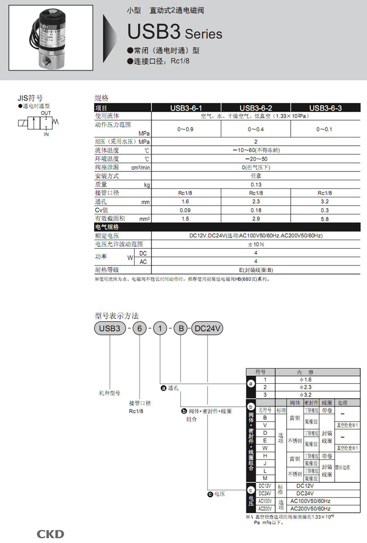 USB3-6-1,USB3-6-2,USB3-6-3,CKD直動(dòng)式2通電磁閥