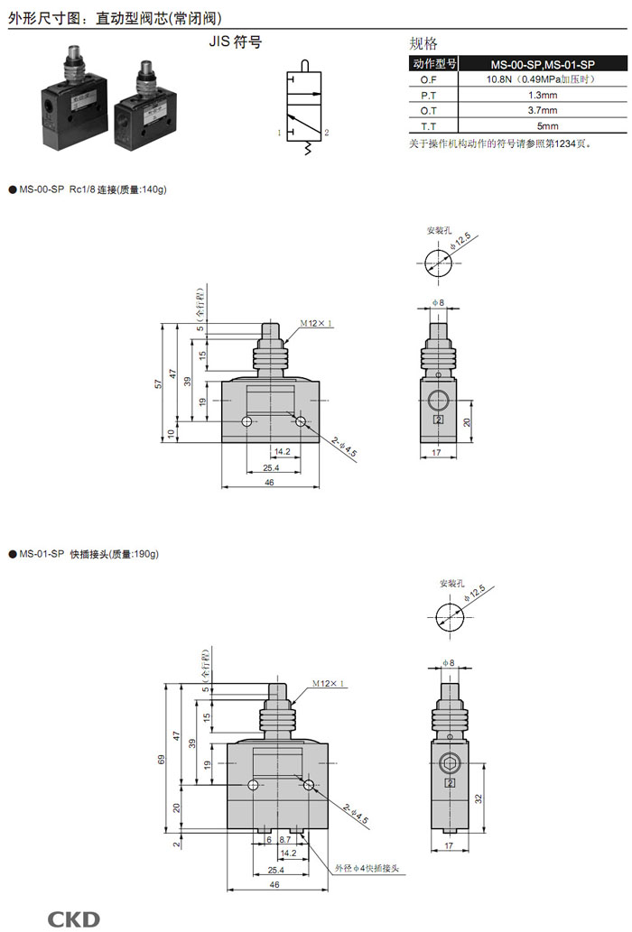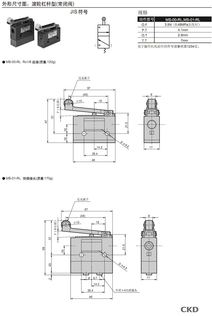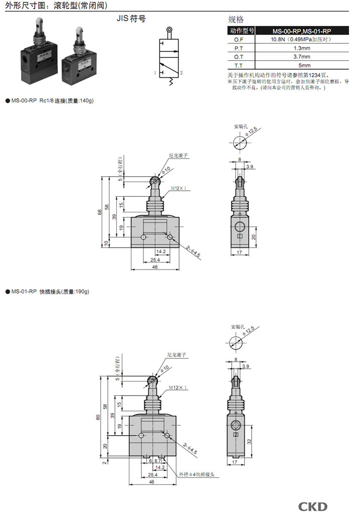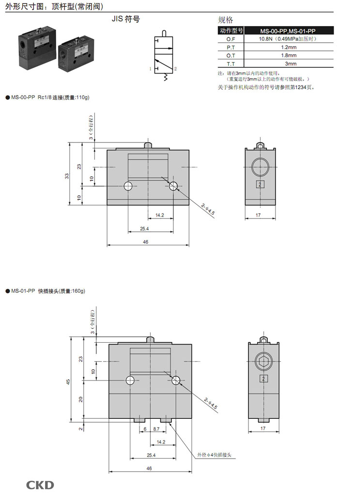 MS-00,MS-01,MS-10,MS-11,MS-40,MS-41,MS-00-PP,MS-01-PP,MS-10-PP,MS-40-SE2,CKD機(jī)械閥